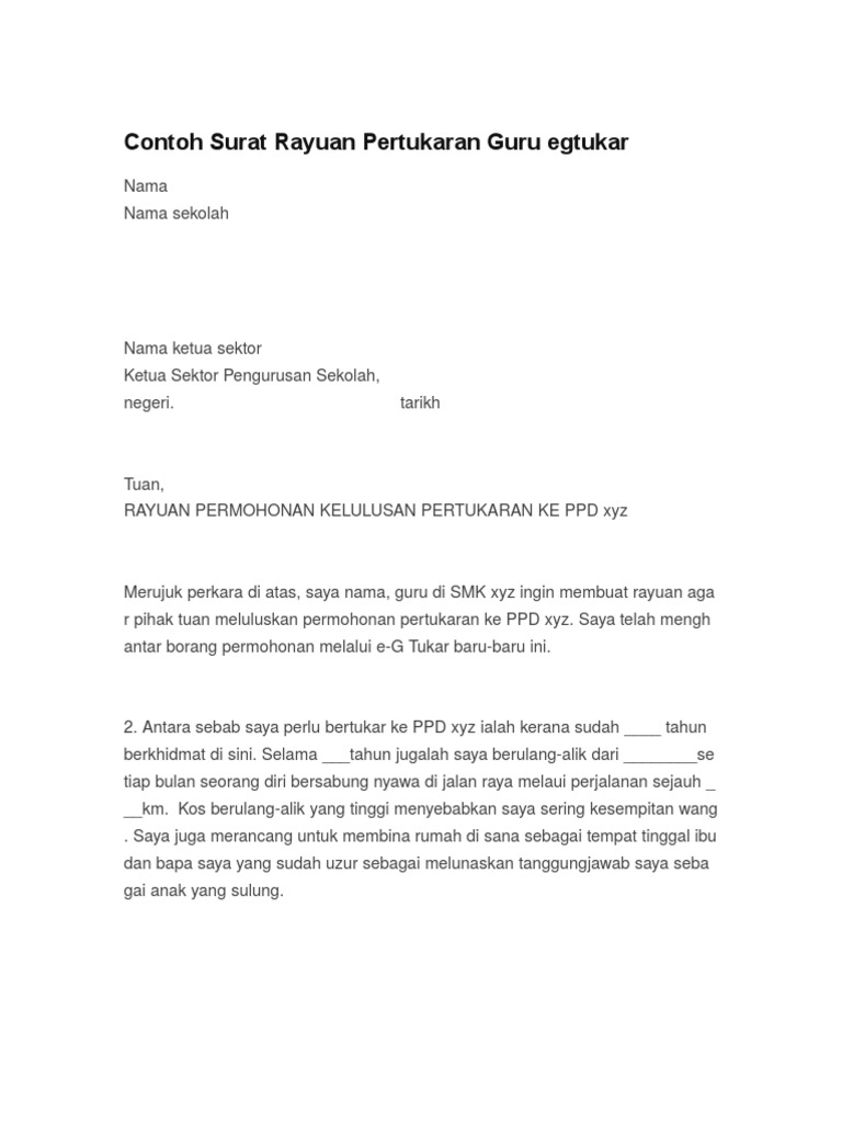 Contoh Surat Rayuan Pertukaran Guru Egtukar Pdf