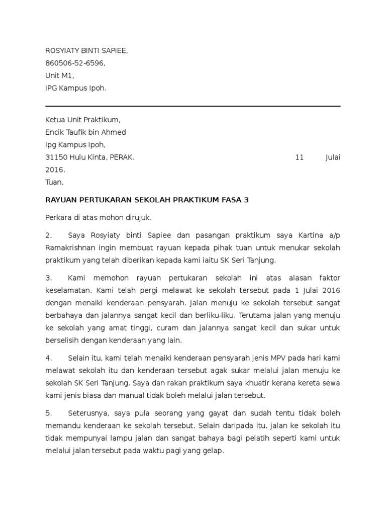 Surat Rayuan Pertukaran Sekolah Praktikum Pdf
